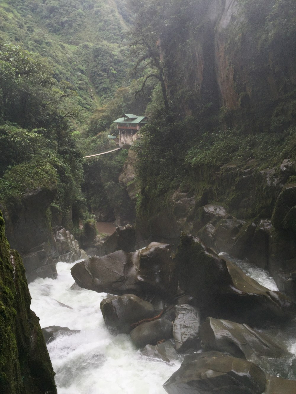 Me levanté a las 6:00 a.m., me duele hasta el pelo, pero toca ir al Pailón del Diablo y a la Casa del Árbol, antes de arrancar para Colombia.