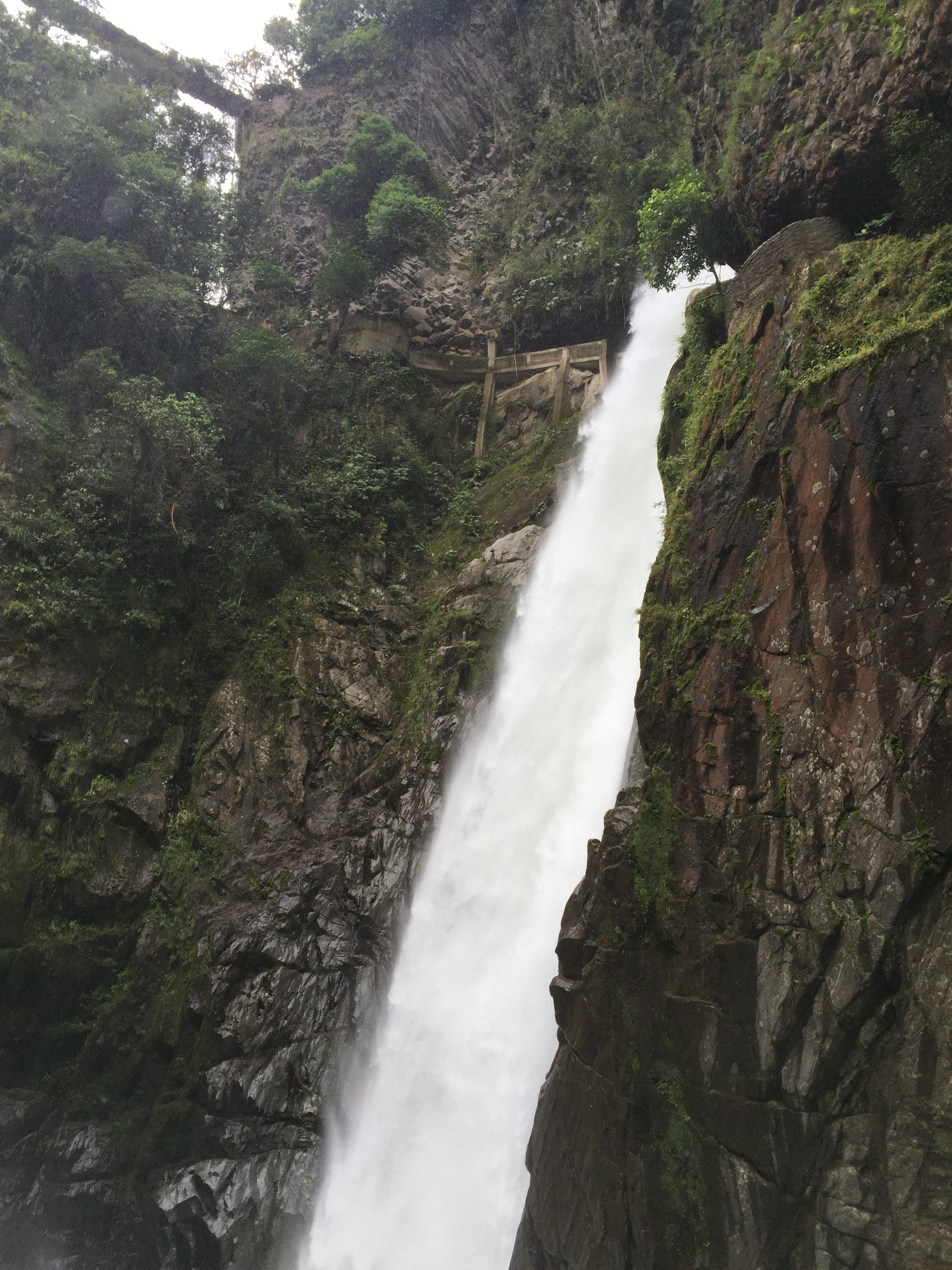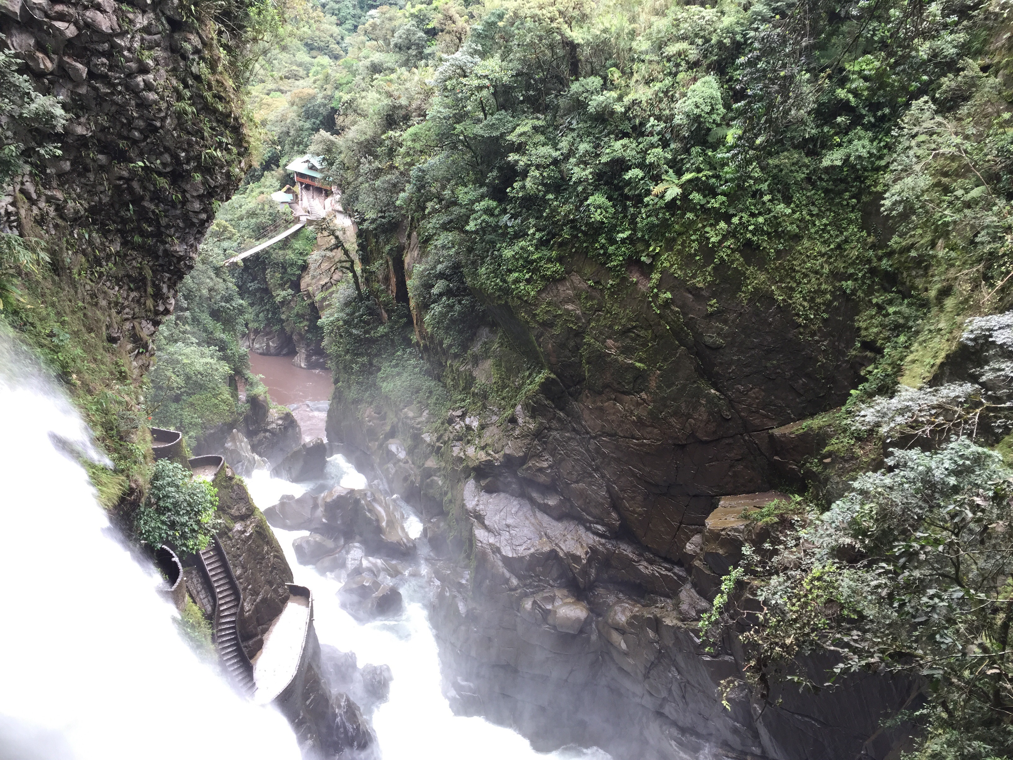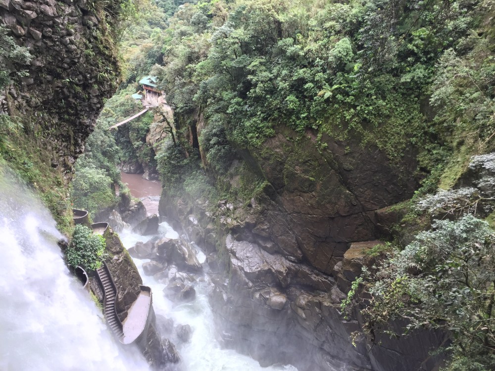 El Pailón queda como a 10 km de Baños, hay parqueadero y toca hacer una caminata como de 15 minutos. Vale la pena… Obviamente después de haber estado en las Cataratas de Iguazú, cualquier cascada se ve normal, pero está es muy bacana y tiene unos balcones del putas. La entrada vale 1.5 dólares.