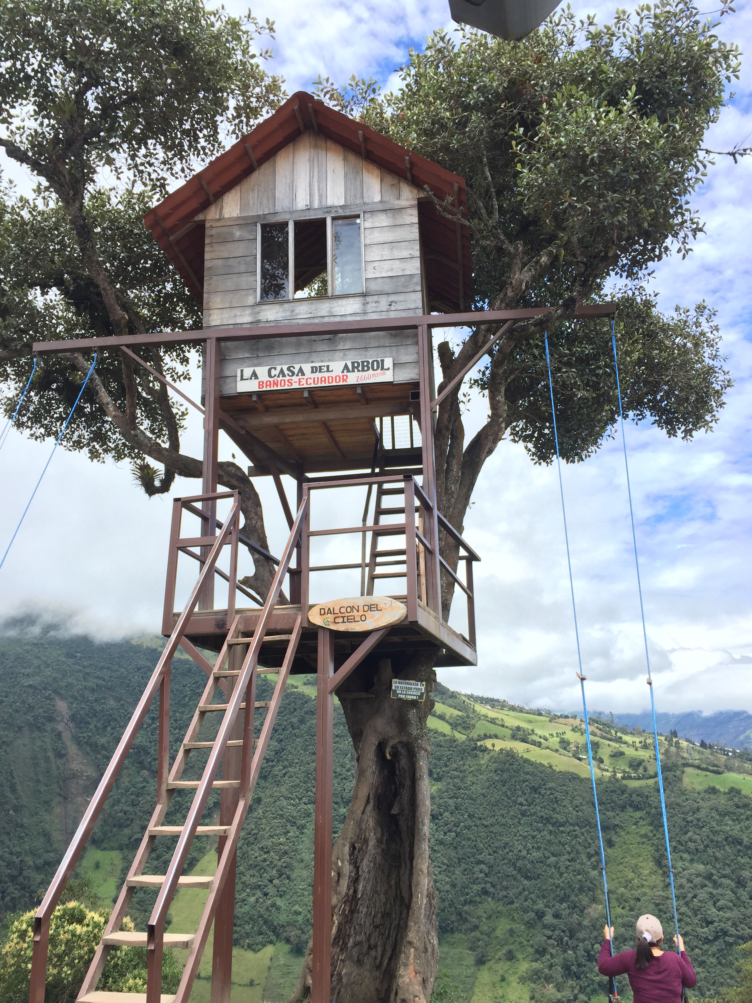 Ahora para la famosa Casa del Árbol (tiene dos premios mundiales en fotografía). No puede faltar la foto ahí. Toca regresar a Baños y de ahí subir como 12 km. No tiene pierde… Toda la vía está señalizada aunque tienen que tener mucho cuidado porque es demasiado estrecha.