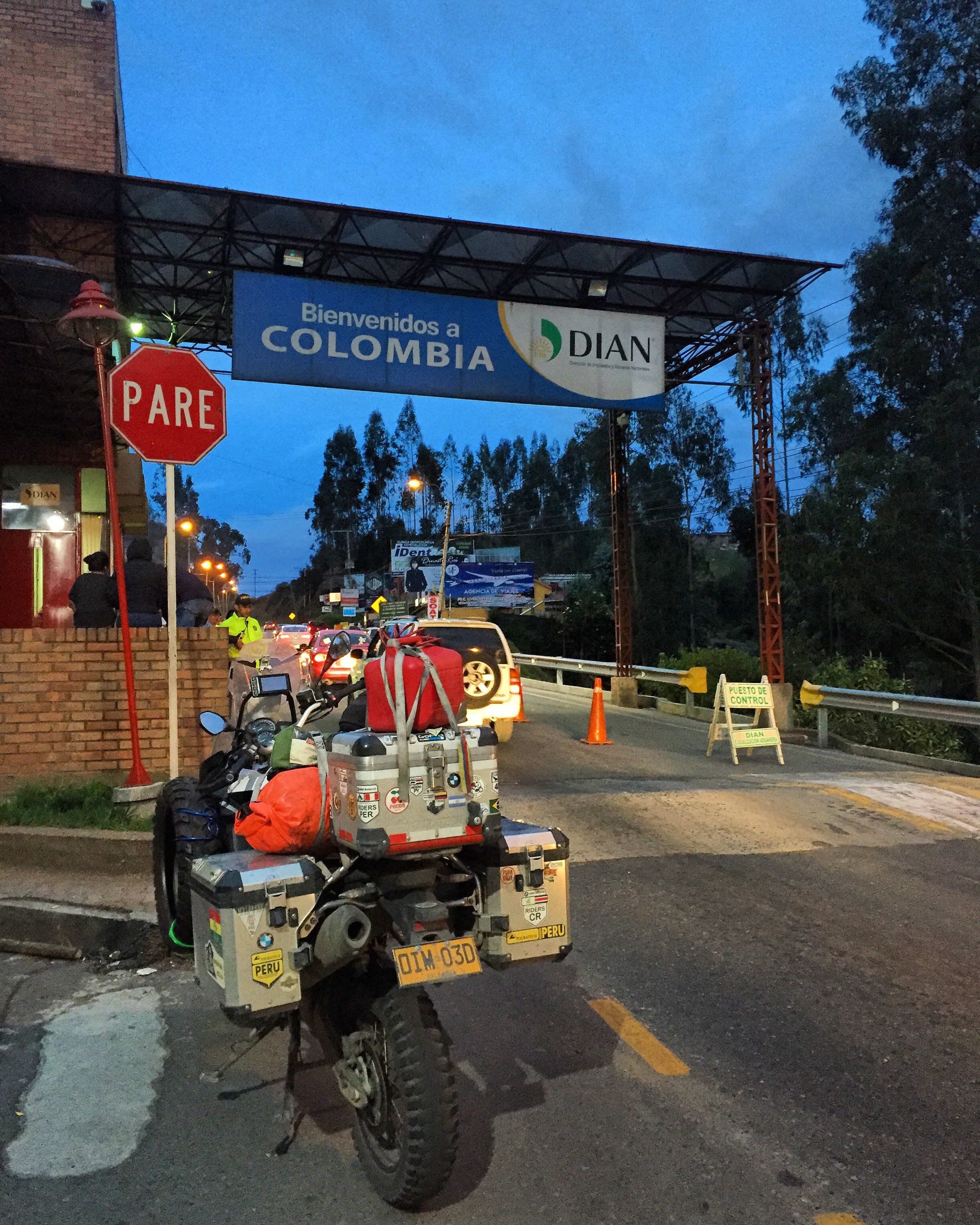 Llegué a la frontera aún de día, así que decidí seguir hasta Pasto. Del lado ecuatoriano, me pidieron sacar unas copias a mi cédula colombiana (porque estaba saliendo con el pasaporte costarricense), qué hps para poner problema por todo ome, el único país que me pidió la licencia de conducción, ver la moto, etc., manes para joder ome!